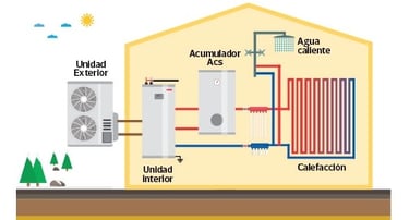 L'aerotèrmia és un sistema de climatització i aigua calenta que utilitza l'energia del aire exterior per generar calefacció, refrigeració i ACS de forma eficient. És una alternativa moderna i sostenible a les calderes tradicionals.