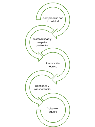 Confianza y transparencia. Establecemos relaciones de confianza con nuestros clientes, basadas en la comunicación clara, honestidad y cumplimiento de compromisos.